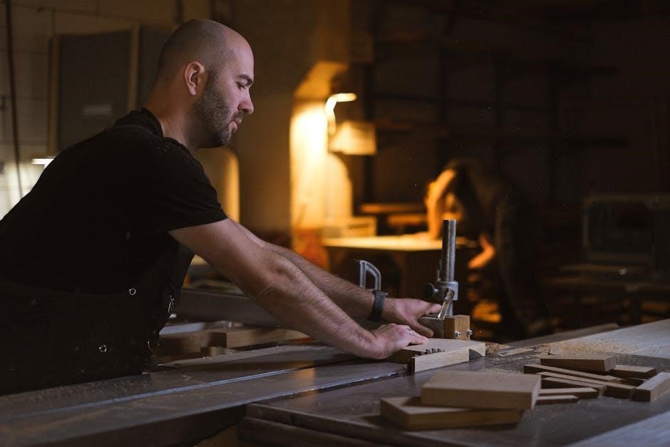 Craftsman table saws are known for their robust design and durable construction, ensuring long-lasting performance. Many models feature a cast iron table top, which provides excellent stability and resistance to vibration, allowing for precise cuts. The steel frame and rigid assembly contribute to overall sturdiness, making these saws suitable for demanding woodworking tasks. The finish is typically smooth, reducing friction and preventing material from sticking. Some models include ergonomic designs, such as adjustable stands, to enhance user comfort during extended use. While older models are often praised for their heavy-duty build, newer variations may prioritize portability without compromising on essential functionality. The attention to detail in craftsmanship ensures that Craftsman table saws remain reliable tools for both hobbyists and professionals. Regular maintenance, as outlined in the manual, helps preserve the saw’s performance and longevity.